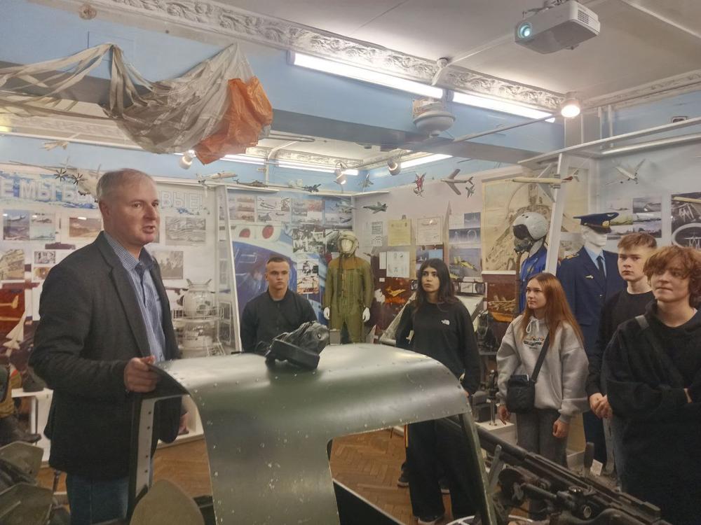 ✈️Этот памятный знак — важный элемент экскурсии: техническая деталь превращается в символ памяти о подвиге летчиков и напоминание о цене мирного неба. Визит объединил не только образовательную, но и воспитательную составляющую, помогая студентам прочувствовать историческую ответственность и уважение к летным традициям.
